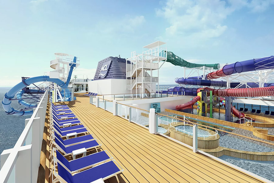 Swirl down a double loop waterslide over the side of the ship on the Ocean Loop. Twist and shout while rushing down the Aqua Racer and splash around at the Aqua Park.